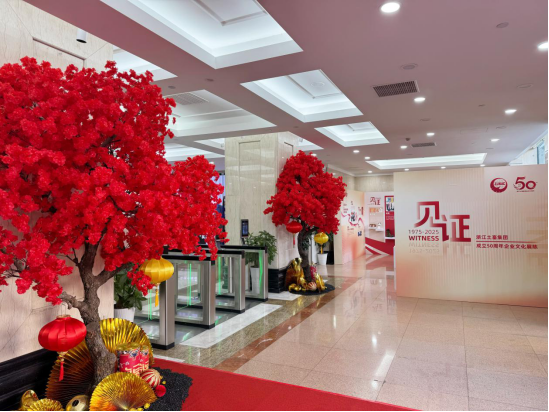 2025年2月,浙江土畜即將迎來成立五十周年的重要時刻,作為司慶系列活動之一,公司結合春節裝飾,在一樓大廳重點推出了主題為“見證”的五十周年企…