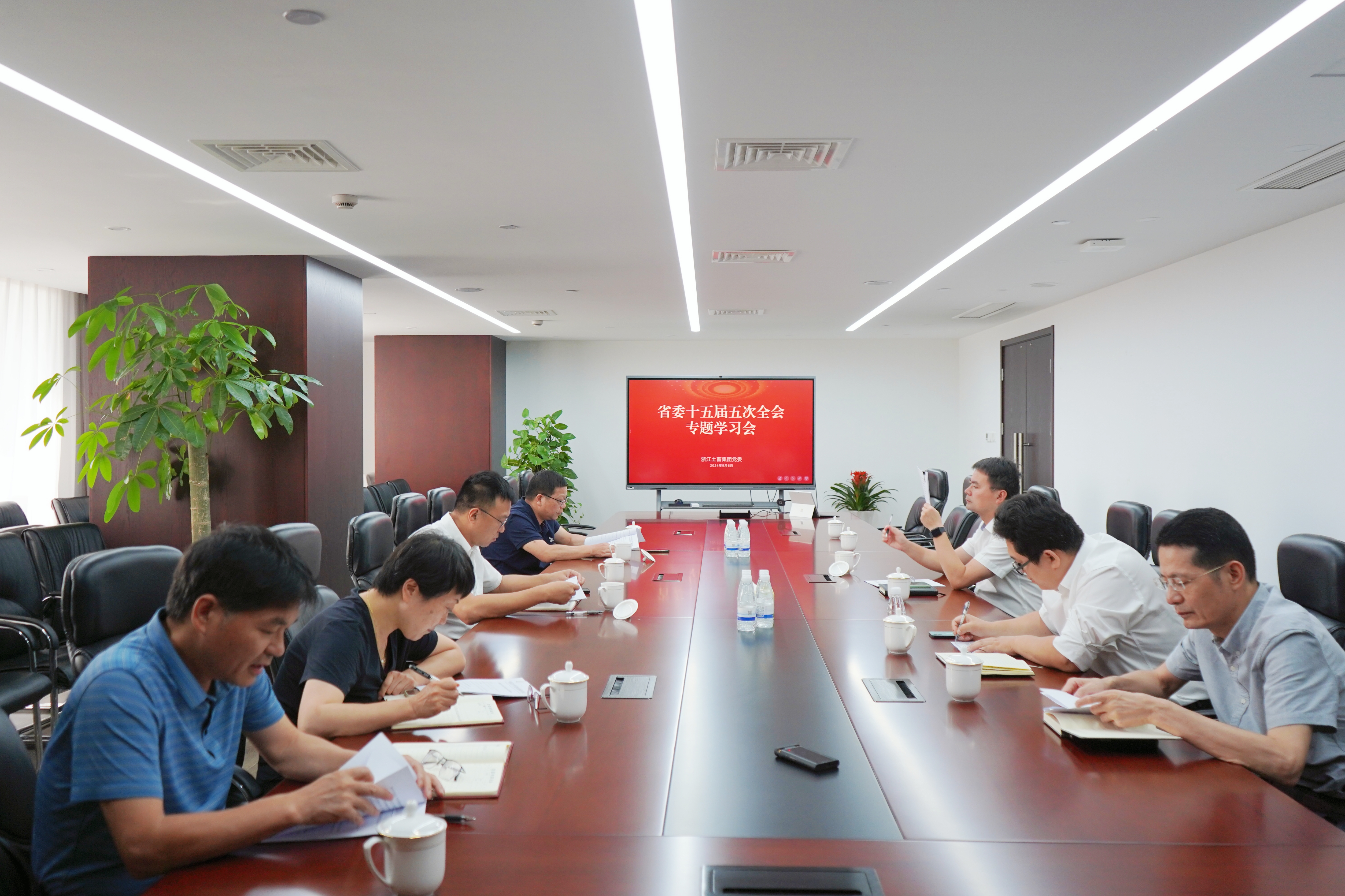 96日下午,浙江土畜集團召開黨委專題學習會,傳達學習省委十五屆五次全會精神,研究部署貫徹落實工作。公司黨委書記、董事長張斌主持會議并講話。