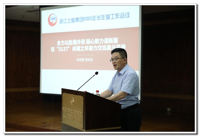 公司黨委副書記、總經理楊躍勝在題為《全力以赴穩外貿 凝心聚力謀新篇 在“3137”關鍵之年奮力交出高分答卷》的報告中指出,上半年,公司堅決貫徹集團決策部署,統籌推進疫情防控和復工達產,穩外貿、拓內貿、抓風控、強管理、強黨建,以“兩戰贏”為目標,踐行“爭先創優”,有效應對了全球疫情沖擊。他強調,開展下半年工作,要以國貿集團半年度工作會議精神為指引,牢牢抓住集團領導提出的“八個更加注重、八個走在前列”、“全力交出‘經濟、改革、發展、治理、安全、黨建’六張高分報表”總體要求,加快構建國際國內雙循環,為集團奮進3137、為全省“重要窗口”建設作出更多貢獻。