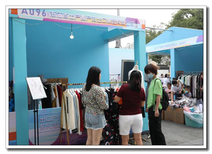 7月25日-31日,由商務部、浙江省政府共同主辦的全國首場“外貿優品匯,扮靚步行街”出口產品轉內銷活動周在首批全國示范步行街杭州湖濱步行街舉行。浙江土畜高度重視,堅決貫徹國家構建國內國際雙循環的決策部署,加快開拓出口轉內貿渠道,總經理楊躍勝主持召開活動前期會議,動員組織5個出口業務部精心選品、積極參與。本次活動公司8個展位銷售箱包、服裝、遮陽傘、口罩、保溫杯、香薰等優質出口產品,累計實現銷售額近12萬元。