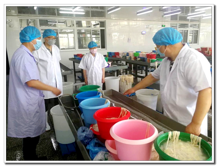 駱總率檢查組先后對廠區(qū)的污水處理中心、配電控制室、集體宿舍、食堂、加工車間等重點部位的設(shè)備設(shè)施運行情況、日常巡查記錄、制度上墻等情況進(jìn)行了檢查和現(xiàn)場指導(dǎo)。凱興畜產(chǎn)常務(wù)副總經(jīng)理李俊向檢查組詳細(xì)匯報了企業(yè)防疫及復(fù)工復(fù)產(chǎn)情況、安全生產(chǎn)管理現(xiàn)狀及節(jié)能減排所取得的成效。