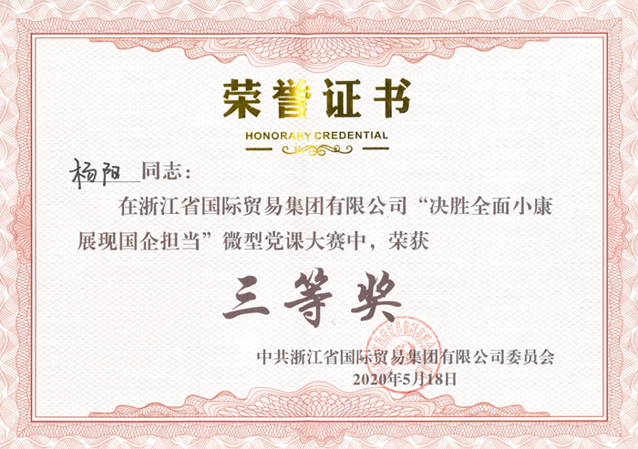 5月18日下午,省國貿集團第四屆微型黨課大賽在19樓會議廳隆重舉行,來自各成員公司的19名參賽選手緊緊圍繞“決勝全面小康、展現國企擔當”的主題,結合不同崗位、不同業態、不同角度,從細微處談起,從個人閱歷談起,從公司發展談起,從理想信念談起,或表達奮斗心聲,或介紹身邊典型,或抒發祝福情感,用“演”與“講”的才情與智慧,讓現場觀眾備受鼓舞,喚起了大家的思考與共鳴,得到了專家評委們的高度肯定,我公司參賽選手楊陽最終榮獲大賽三等獎。