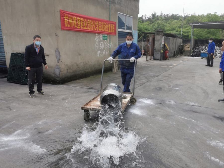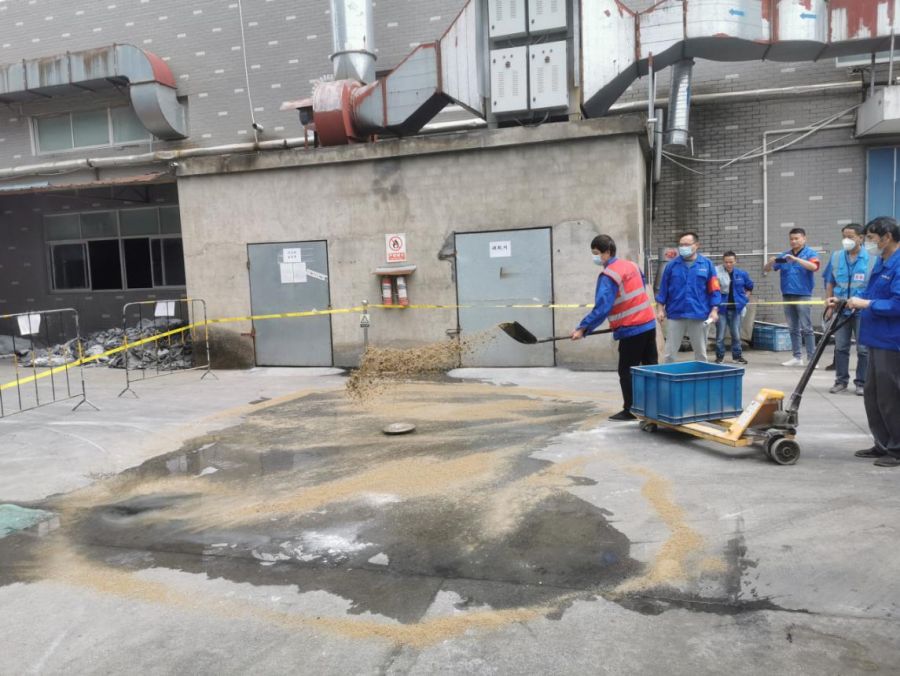 在危化品泄漏現(xiàn)場處置環(huán)節(jié),企業(yè)模擬溶劑油在運(yùn)送過程中意外傾倒泄漏事故,參加演練人員準(zhǔn)確判斷風(fēng)向,安排人員疏散警戒,迅速用沙土對泄漏物進(jìn)行圍堵覆蓋,并讓作業(yè)員工及時(shí)用洗眼器對眼睛和臉頰進(jìn)行徹底清洗。