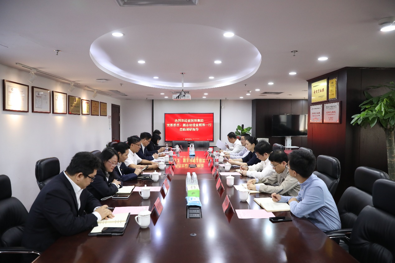 5月25日上午,省國貿集團黨委委員、副總經理金朝萍到訪浙江土畜開展調研,集團審計部、數字與信息化部相關負責人陪同,浙江土畜黨委書記、董事長張斌,黨委副書記、總經理楊躍勝等領導班子成員及相關部門負責人參加座談。