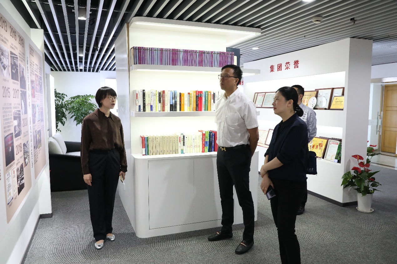 金朝萍一行先后參觀了企業文化俱樂部和數字服裝研發中心,詳細了解浙江土畜發展歷程與數字服裝板塊建設成果。