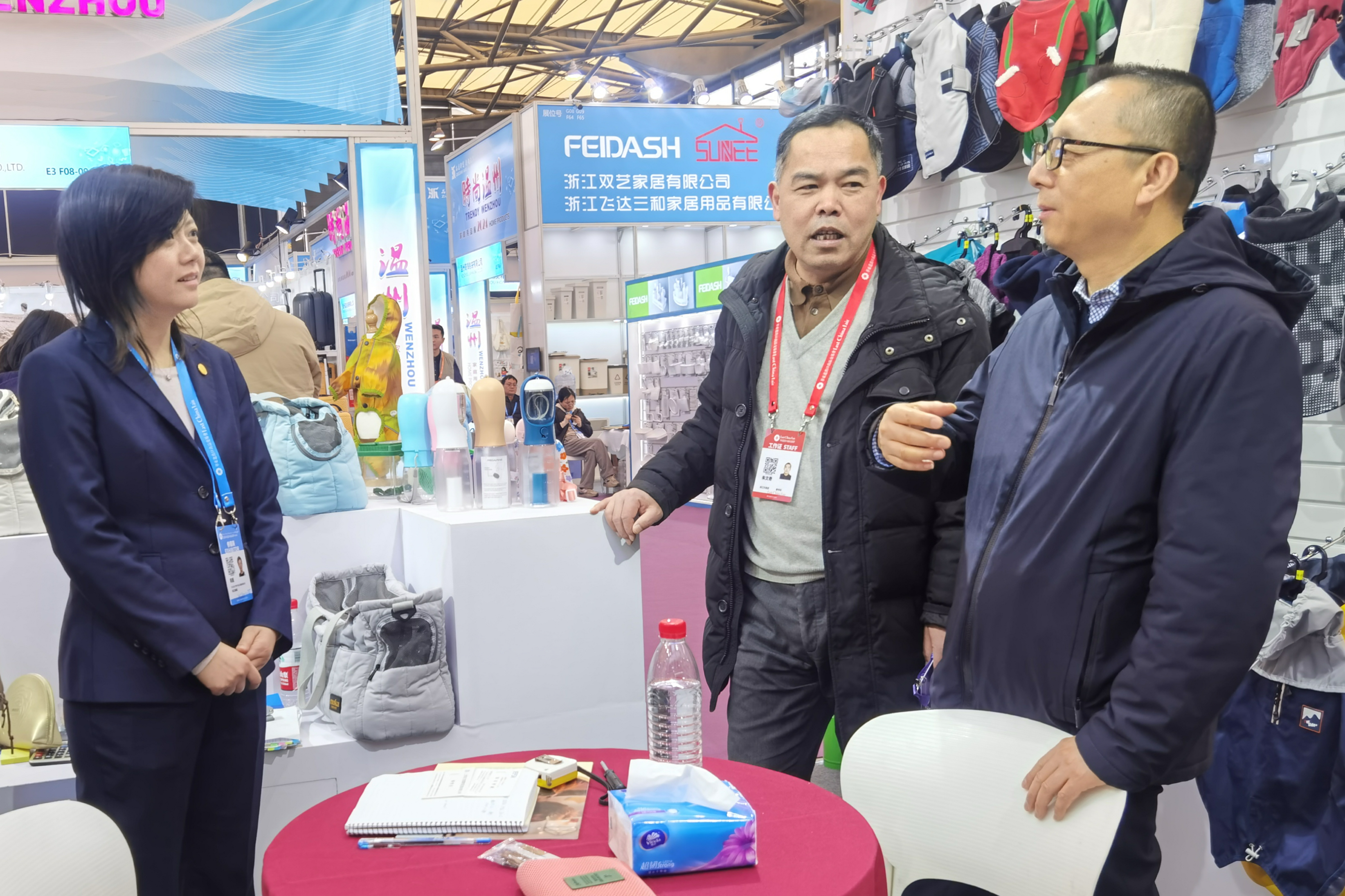 34為期四天的32屆華東進(jìn)出口商品交易會(huì)在上海新國(guó)際博覽中心落下帷幕。奔赴新春第一展,掌握行業(yè)風(fēng)向標(biāo),浙江土畜積極組織本級(jí)業(yè)務(wù)部門及直屬企業(yè)32位業(yè)務(wù)員參展,在21個(gè)展位展出了服裝家紡、家居用品、裝飾禮品等。